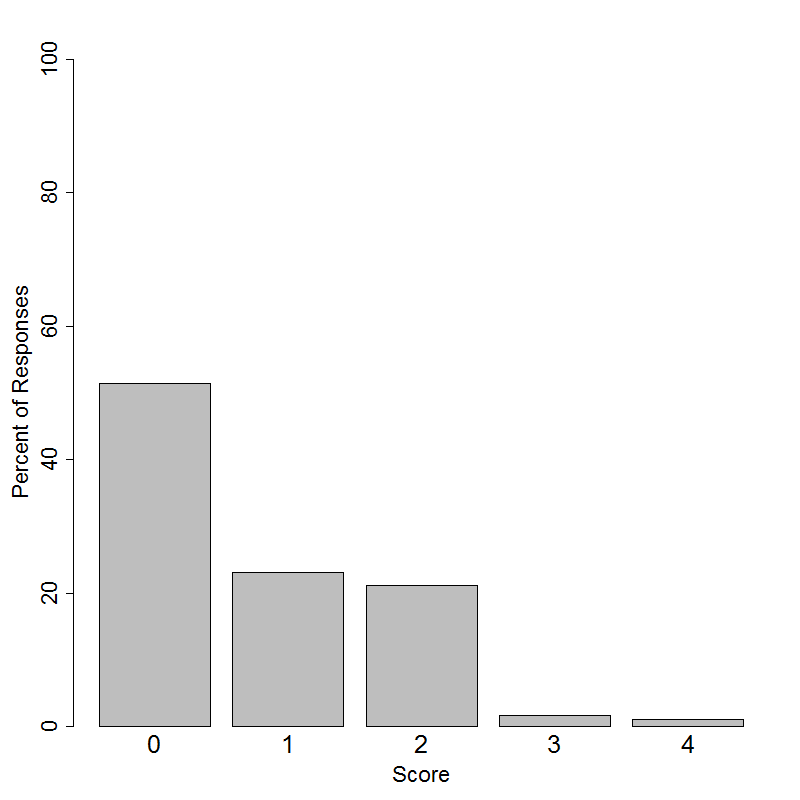 Responses that include correct calculations in part (c) but did not provided an adequate justification in part (d) are considered partially correct for the combined parts (c) and (d). Also considered to be partially correct are responses with incorrect calculations in part (c) but which provided a correct conclusion and justification in part (d) based on the percentages obtained in part (c).