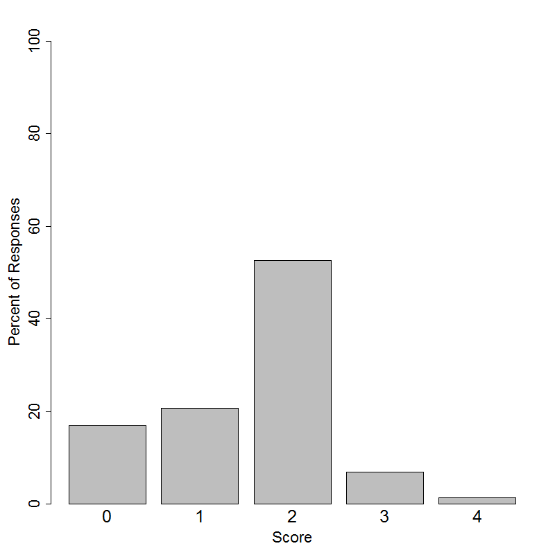 This item was administered to students in grades 6-12. Students in grades 6-9 had the following distribution of scores on a 4-point scale.