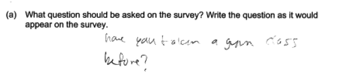 Part (a) asked students to write an appropriate survey question.