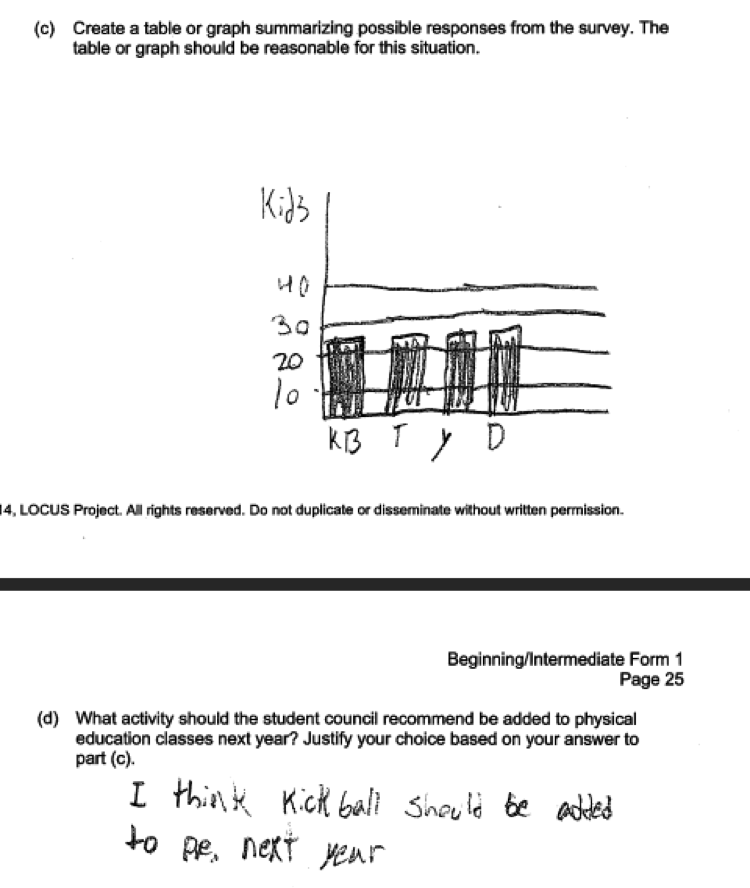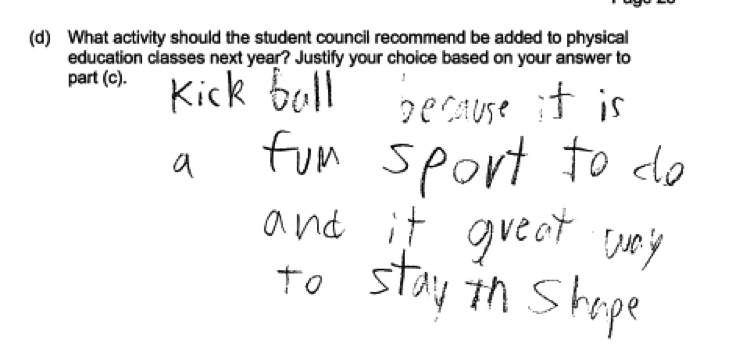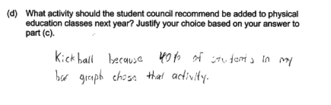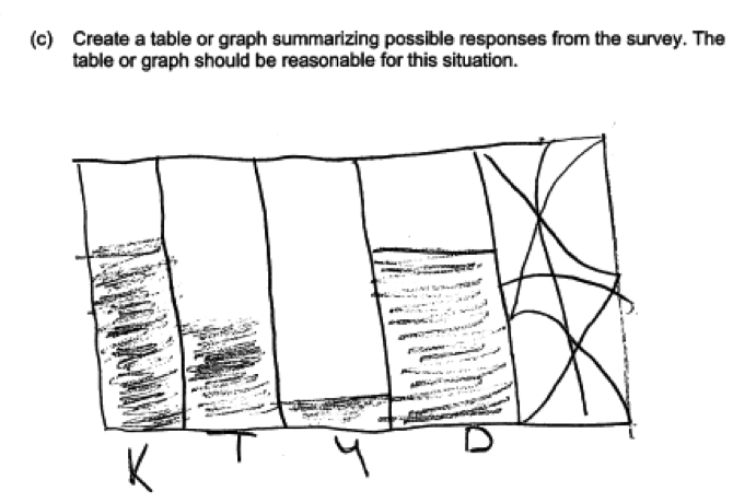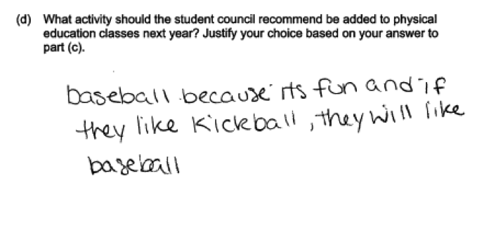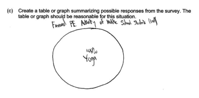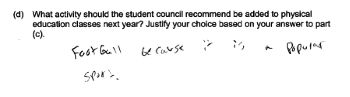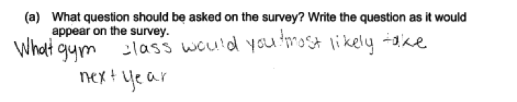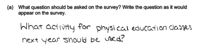 Some questions, like the one in the student response below, would not have resulted in data that could be used to answer the question posed. Responses like this were scored as incorrect for part (a).