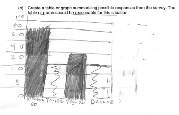 Others added a scale, but the scale was not correct. For example, consider the student response below, where the scale increases by 5, then by 10 and then by 20, but the spacing between the scale labels does not change.