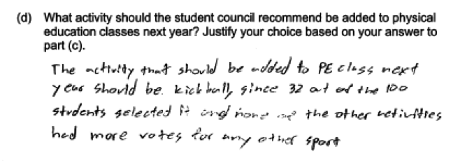 (d) What activity should the student council recommend be added to physical education classes next year? Justify your choice based on your answer to part (c).
